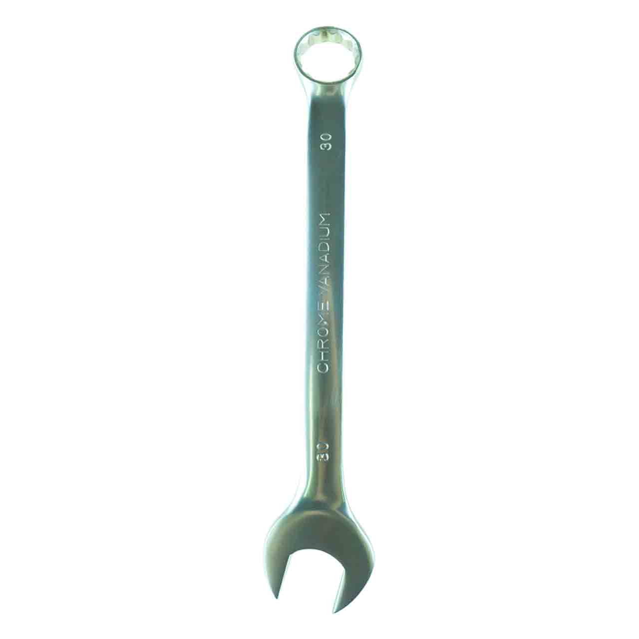 Ключ рожковый комбинированный 30 мм – это самый популярный слесарный инструмент, предназначенный для закручивания или откручивания болтов, гаек и других деталей имеющих резьбу. Зев ключа имеет точный размер приближенный к номинальному, именно это обеспечивает оптимальный контакт рабочих поверхностей.