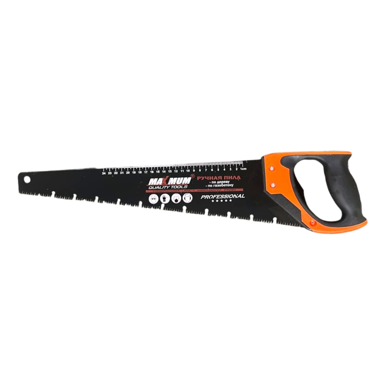 Универсальная ручная ножовка (пила) 500 мм от "Maximum Quality Tools" подходит для работ по древесине, ДСП, ламинату, пластмассе и газобетону. Удобная рукоятка из пластика с резиновыми вставками позволяет осуществлять распиловку заготовок под углом 45 и 90 градусов. Пила с пластиковой рукояткой имеет полотно из закаленной стали. Режущее полотно имеет специальное антикоррозийное покрытие и измерительную шкалу.