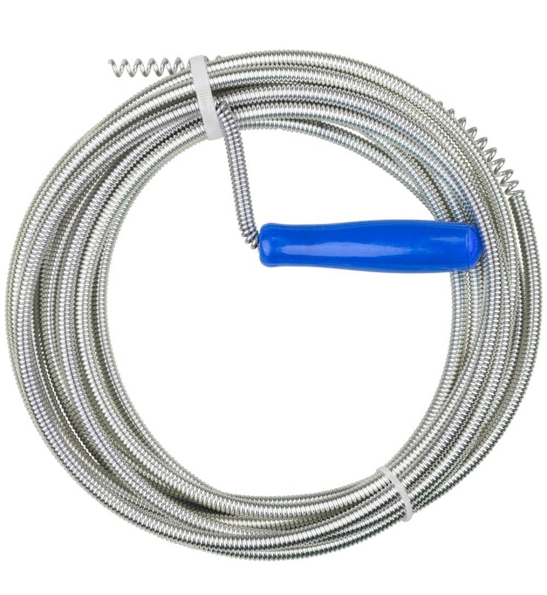 Трос для чистки труб 17 метров со спиральным наконечником используется для профилактики и удаления засоров. Там, где химические средства не справляются, пружинный тросик станет отличным средством для прочистки канализации, унитаза, сливных труб в ванной, душевой кабине, раковине как в доме, так ив квартире. Приспособление для чистки сливов от волос обладает гибкостью и упругостью, оно преодолевает повороты и соединения канализационной системы. Для лучшей очистки наконечник растянут, что позволяет лучше очищать стенки изнутри. Пластмассовая ручка сделает вращение троса удобным. После использования трос необходимо очистить и можно убирать на хранение. Изготовлен из стальной пружины, ручка из пластмассы (полипропилен).