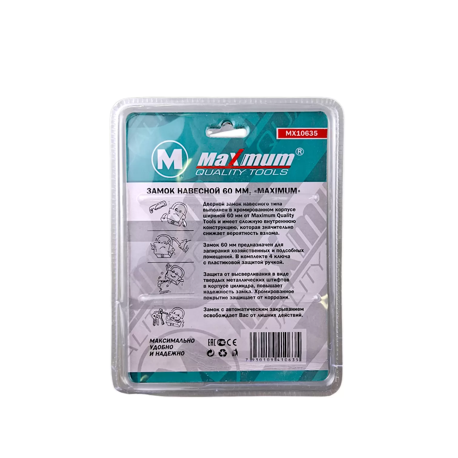 Дверной замок навесного типа выполнен в хромированном корпусе шириной 60 мм от Maximum Quality Tools и имеет сложную внутреннюю конструкцию, которая значительно снижает вероятность взлома. Замок 60 мм предназначен для запирания хозяйственных и подсобных помещений. В комплекте 4 ключа с пластиковой защитой ручкой.