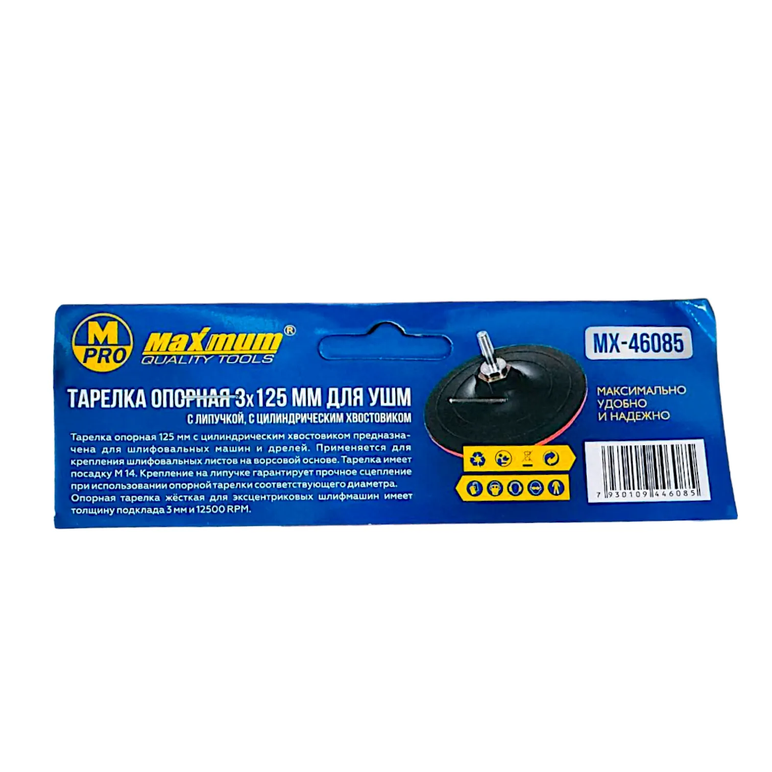 Тарелка опорная 8×125 мм для УШМ, с липучкой, цилиндрический хвостовик, "MAXIMUM" (Максимум)MX 46092